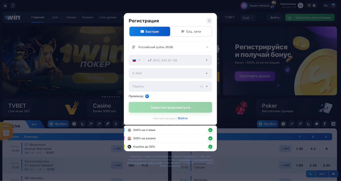 Зарегистрироваться на официальном сайте 1вин достаточно просто, самое главное – следовать рекомендованной последовательности действий, а также осуществлять их именно на проверенной платформе, а не зеркале.